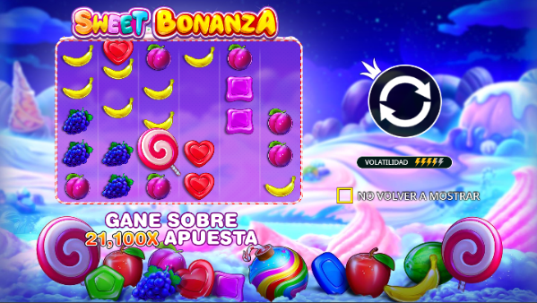 Desde el primer giro, Sweet Bonanza Pragmatic Play te transporta a un mundo de colores vibrantes y dulces tentaciones. Los carretes flotan sobre un cielo pastel lleno de nubes de algodón, donde las frutas jugosas y los caramelos brillantes giran sin parar. Cada símbolo, como plátanos, uvas, melones, manzanas, corazones y piruletas, tiene una animación suave y atractiva que le da vida al juego.
