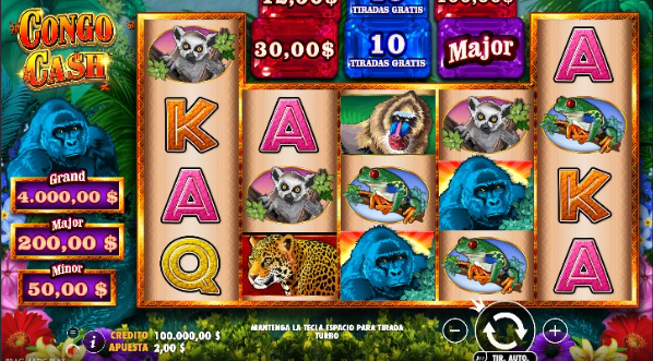 Desde el primer giro, Congo Cash Pragmatic Play te sumerge en una jungla vibrante, llena de sonidos naturales, colores intensos y criaturas majestuosas. El protagonista es un gorila que simboliza fuerza y fortuna, acompañado de leopardos, mariposas y lémures que aportan dinamismo a cada giro.